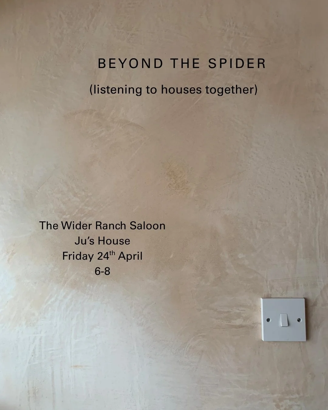 Listening Beyond the Spider is an evening quietly engaging with all that is at the edges, or just beyond, in a house. Noticing the almost imperceptible that floats just out of reach, as delicate as the spider’s own web. Leaning in to corners, nooks, cupboards, cavities, where voices, sounds and experiences are reflected and filtered and maybe even captured by insulation, brick, plasterboard and layers of wallpaper and paint.